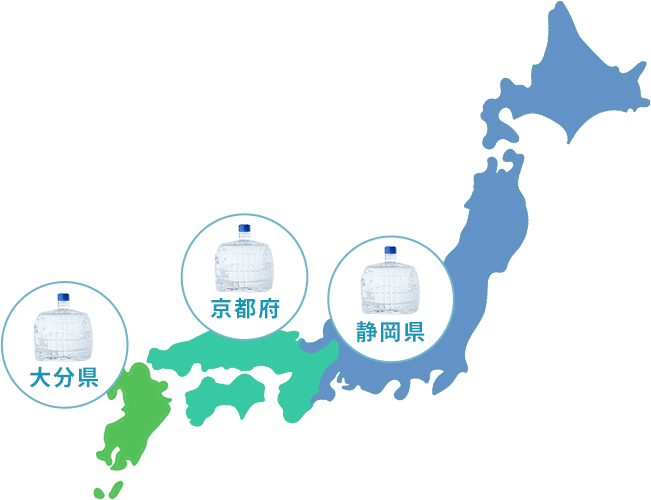 採水地は、日本でも指折りの水どころ 静岡、京都、大分。