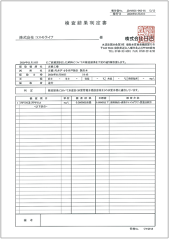 取り扱うすべての天然水について、専門機関 株式会社日吉に委託し、「放射性物質(ヨウ素、セシウム)」また「有機フッ素化合物(PFAS)」が原水へ与える影響・残留状況の検査を定期的に行い、随時お客様に公開しております。